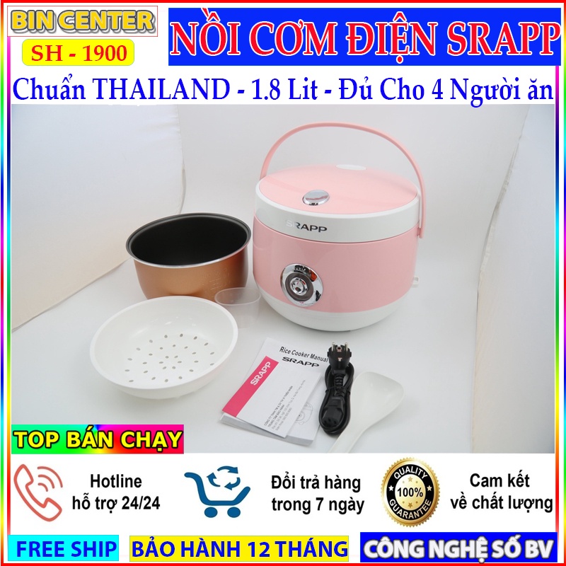 Nồi Cơm Điện Mini SRAPP SH-1900 Chuẩn Thailand Dung Tích 1.8 Lít Tặng Kèm Giá Hấp, Phù Hợp 3-6 Người Ăn