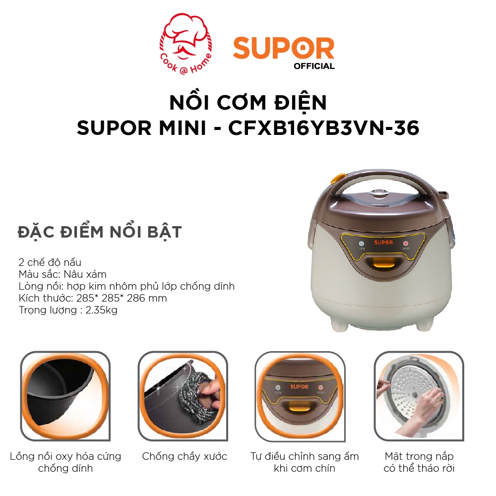 Đặc điểm sản phẩm: Nồi cơm điện Mini Supor CFXB16YB3VN-36