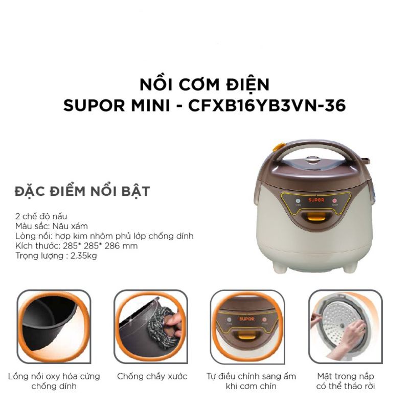 Nồi cơm điện Mini Supor CFXB16YB3VN-36Thông tin kỹ thuật