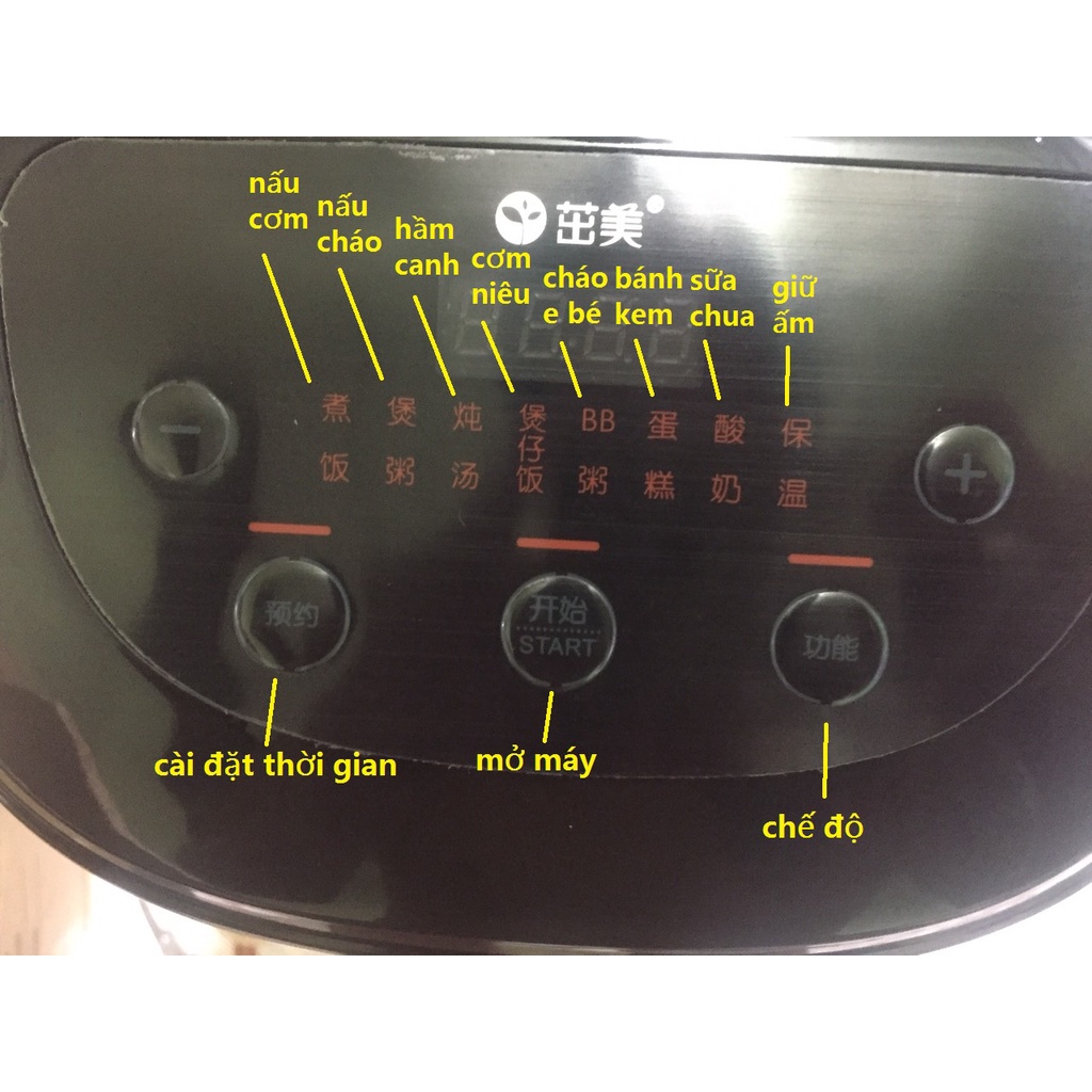- 8 chức năng nấu gồm: Nấu cơm dẻo, Nấu cơm khô, Nấu cơm cháy, Nấu cơm gạo lứt, Hâm nóng, Nấu nhanh, Hấp, Cháo yến mạch, Cháo kê, Cháo thập cẩm, Cháo nhuyễn cho trẻ, Hầm, Làm bánh, Ủ sữa chua