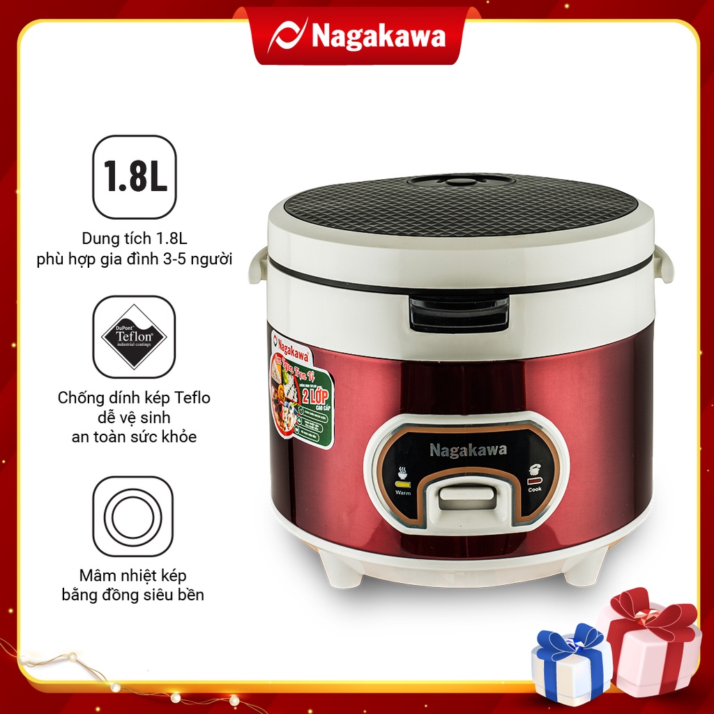 [Mã ELHADEV giảm 4% đơn 300K] Nồi cơm điện Nagakawa NAG0111