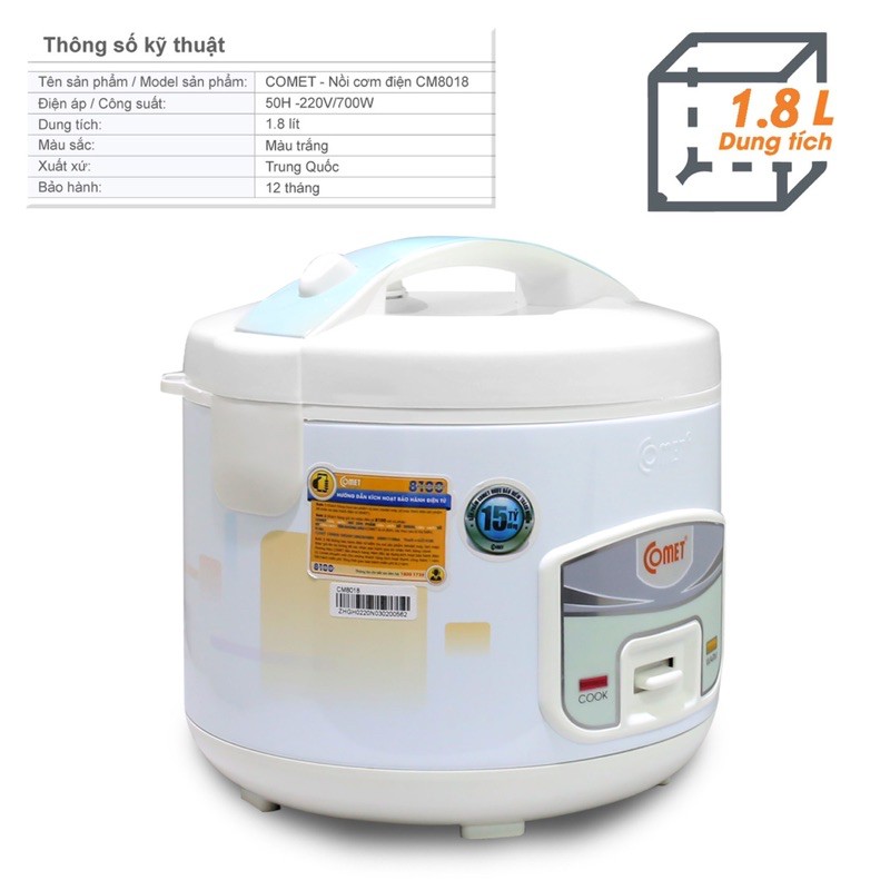- Nồi cơm điện Comet CM8018 thiết kế sang trọng và hiện đại mang đến cho gia đình bạn những bữa cơm đầm ấm.