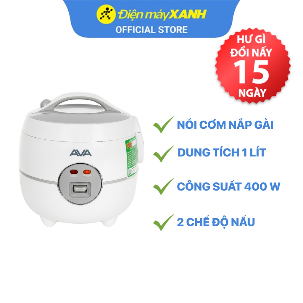 Nồi cơm điện nắp gài Ava JRC-100P 1 lít 400 W lòng nồi chống dính - Chính hãng BH 12 tháng