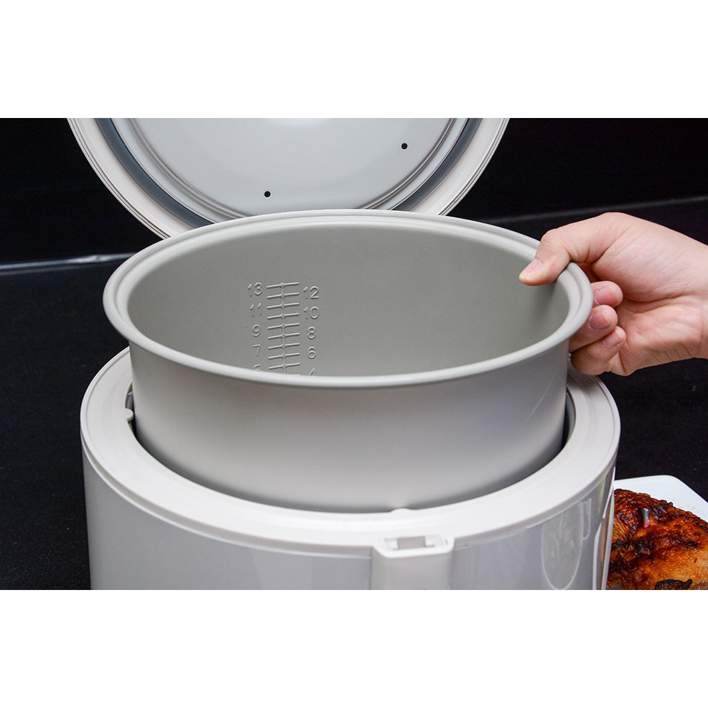 - Kiểu dáng trang nhã với dung tích 3 lít đủ nấu cơm cho gia đình 6 - 8 thành viên- Lòng nồi 2 lớp hợp kim nhôm phủ chống dính dày 1.3 mm giúp cơm không bị cháy