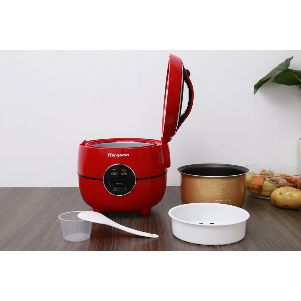 Nồi cơm điện nắp gài Kangaroo KG822 đỏ 1.2 lít 400 W lòng nồi chống dính - Chính hãng BH 12 tháng