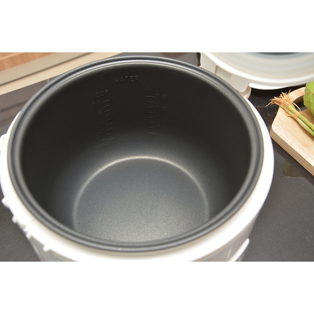 Lòng nồi bằng hợp kim nhôm tráng men chống dính, hạn chế tình trạng cơm cháy, dễ vệ sinh