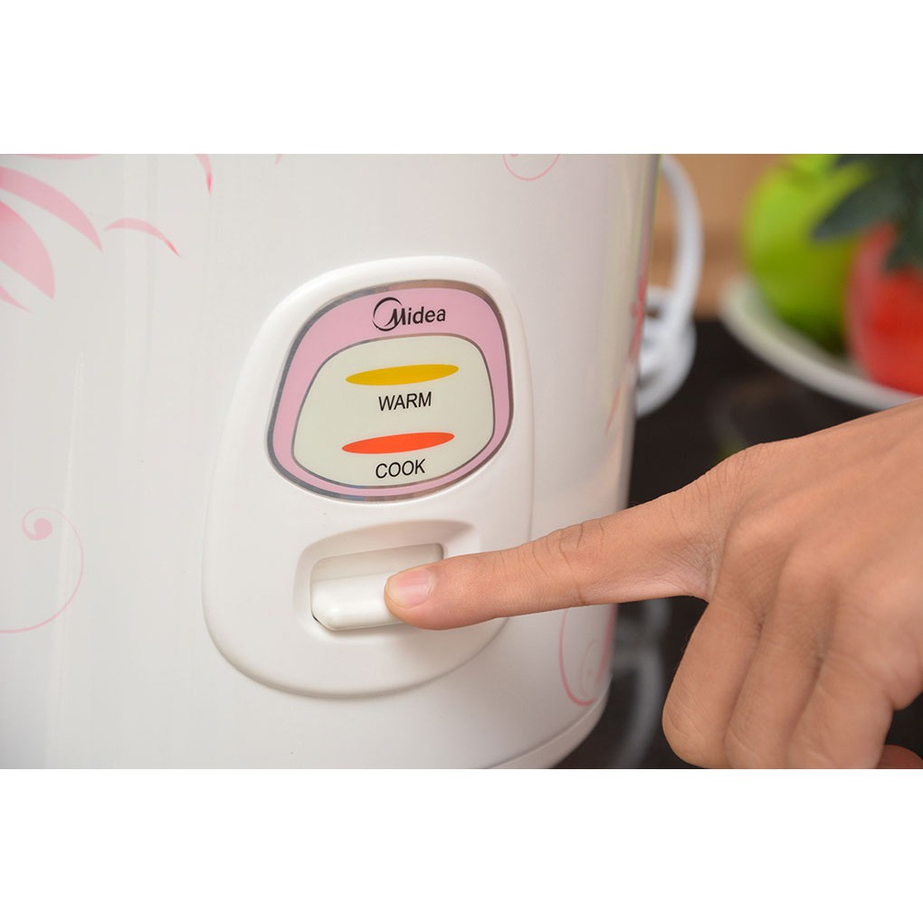 Nồi cơm điện Midea MR-CM18SQ kiểu dáng trang nhã, họa tiết đẹp với dung tích 1.8 lít đủ nhu cầu nấu cơm cho 4 - 6 người ănSử dụng đơn giản chỉ với 1 nút gạt
