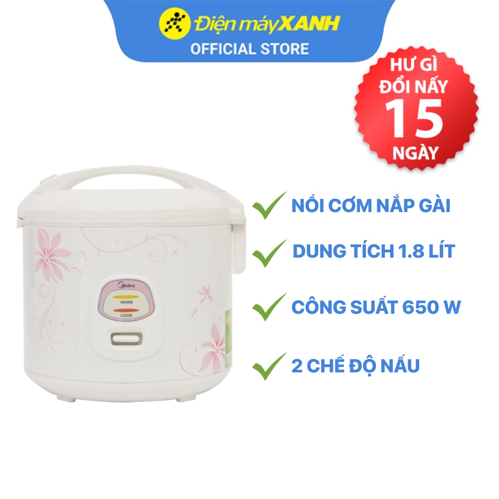 Nồi cơm điện nắp gài Midea MR-CM18SQ 1.8 lít 700 W lòng nồi chống dính - Chính hãng BH 12 tháng - Sản xuất tại Việt Nam
