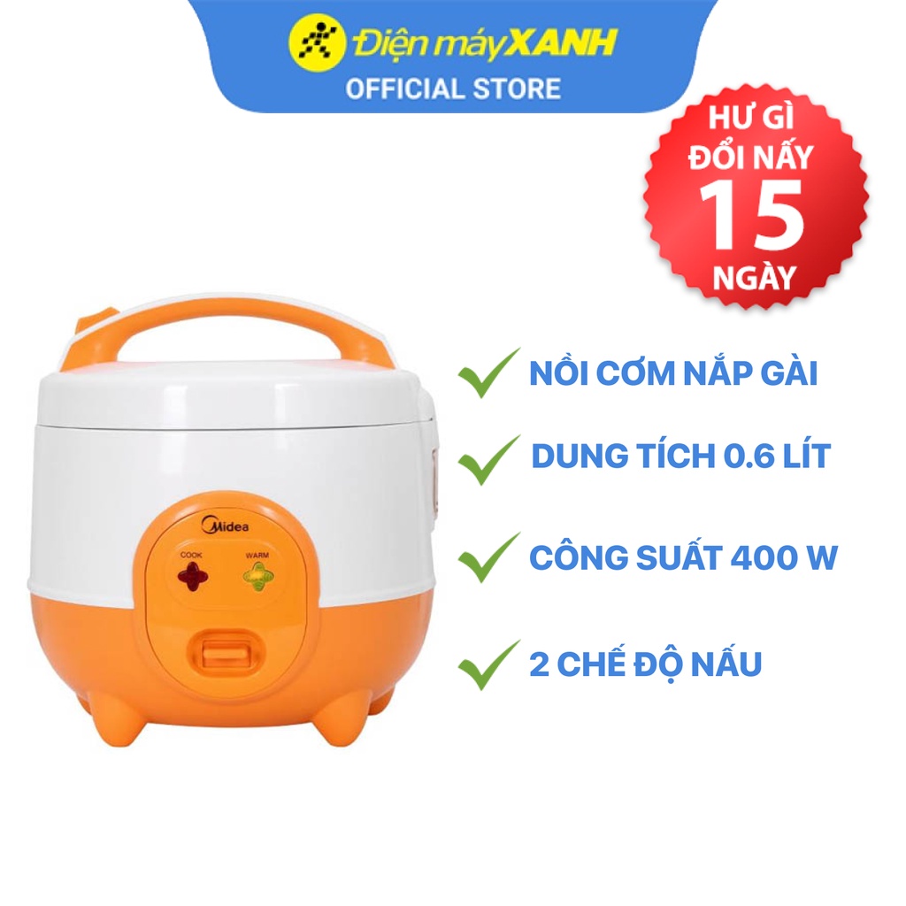 Thiết Bị Điện Gia Dụng > Đồ gia dụng nhà bếp > Nồi cơm điện || Nồi cơm điện nắp gài Midea MR-CM06SD 0.6 lít 400 W lòng nồi chống dính - Chính hãng BH 12 thángCòn hàng