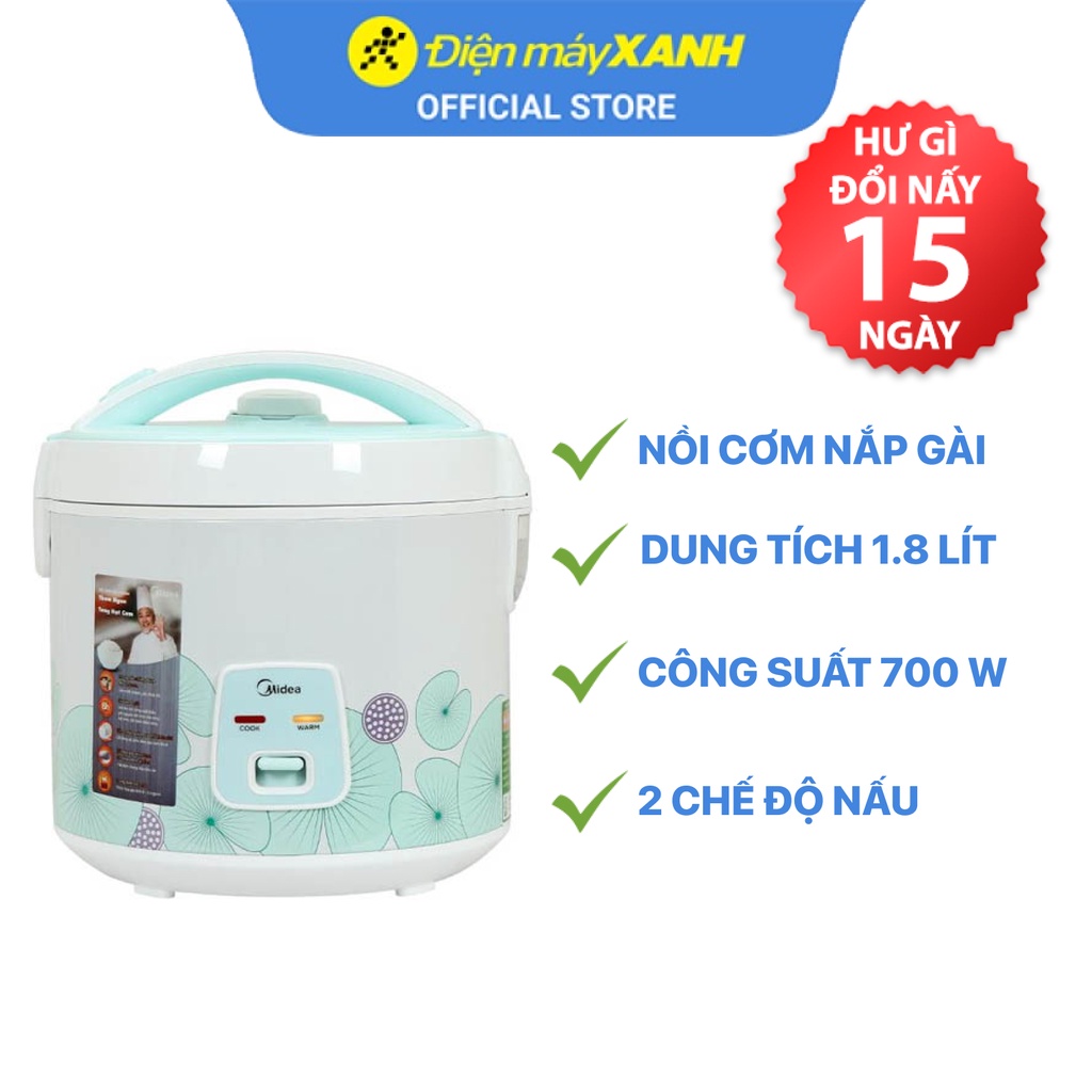 Thiết Bị Điện Gia Dụng > Đồ gia dụng nhà bếp > Nồi cơm điện || Nồi cơm điện nắp gài Midea MR CM1823 1.8 lít 700 W lòng nồi chống dính - Chính hãng BH 12 tháng - Sản xuất tại Việt NamCòn hàng
