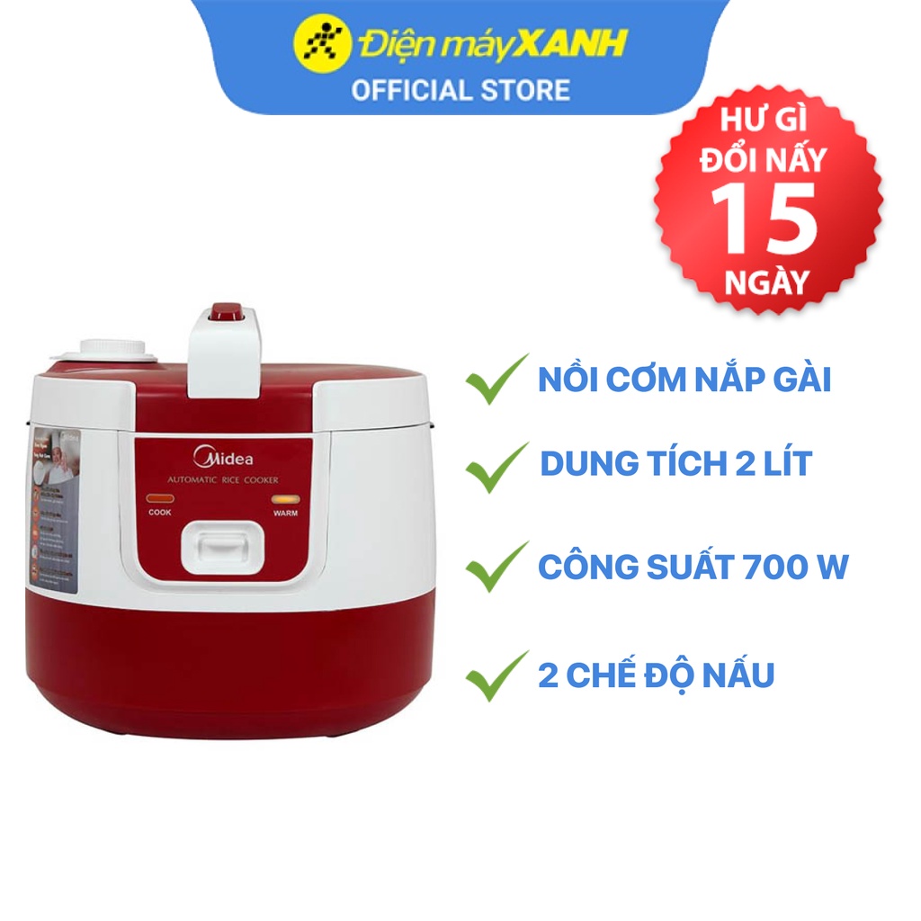 Nồi cơm điện nắp gài Midea MR-SM2061 2 lít 700 W lòng nồi chống dính - Chính hãng BH 12 tháng - Sản xuất tại Việt Nam