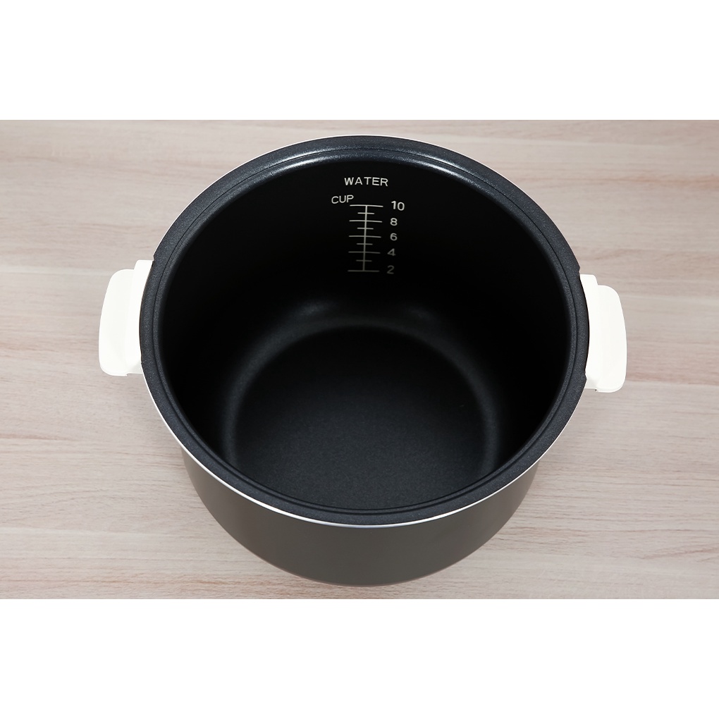 Lòng nồi được phủ lớp chống dính giúp nấu cơm được thơm ngon, tơi xốp, không dính nồi, dễ lau chùi sau khi dùng. Ngoài ra còn lòng nồi dày dặn còn hạn chế méo móp do va chạm, rơi rớt và giữ ấm lâu hơn nhờ 2 lớp chất liệu hợp kim nhôm.