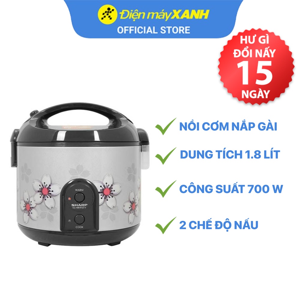 Thiết Bị Điện Gia Dụng > Đồ gia dụng nhà bếp > Nồi cơm điện || Nồi cơm điện nắp gài Sharp KS-NR191STV 1.8 lít 700 W chống dính - Chính hãng BH 12 tháng - Sản xuất tại Thái LanCòn hàng
