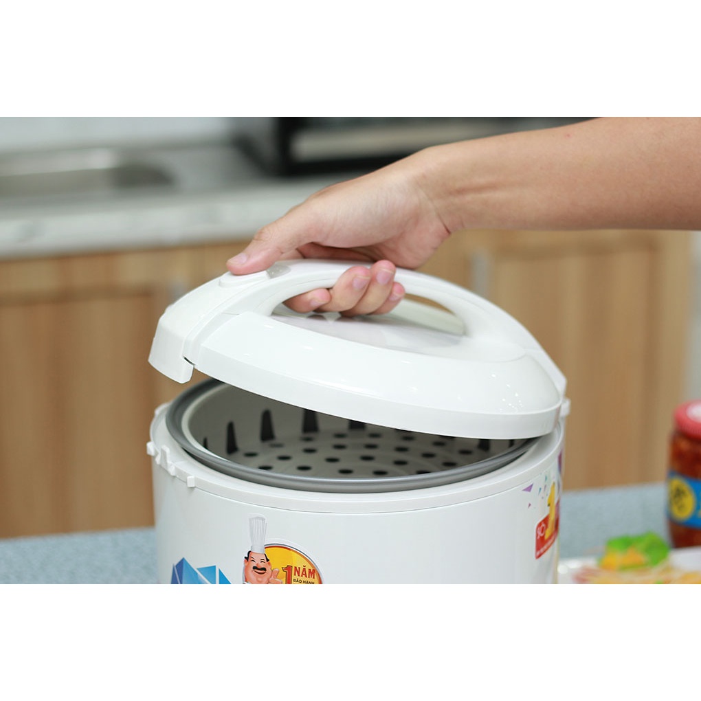 ● Vỏ ngoài bằng nhựa cao cấp cùng dung tích 1.8 lít phù hợp với gia đình có 4 - 6 thành viên● Nắp nồi thiết kế dạng tổ ong, ngăn không cho nước rơi xuống làm cơm bị nhão và nhanh thiu