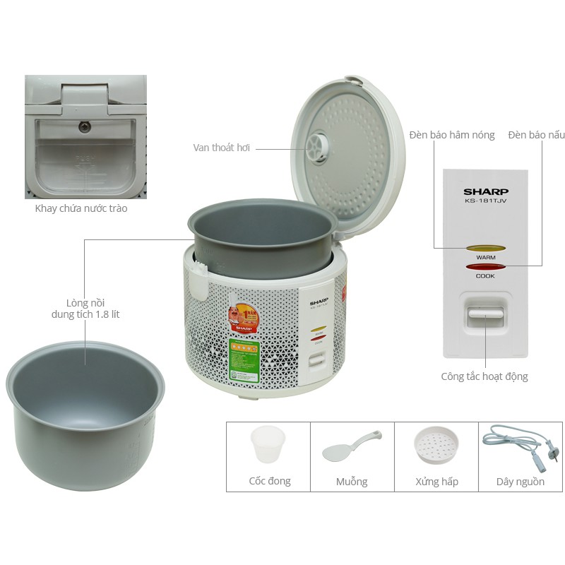 Thiết Bị Điện Gia Dụng > Đồ gia dụng nhà bếp > Nồi cơm điện || Nồi cơm điện nắp gài Sharp KS-181TJVCòn hàng