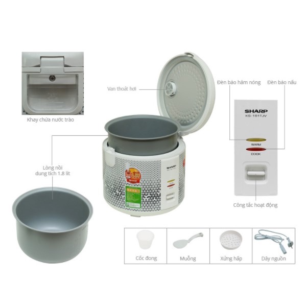 - Tên sản phẩm: Nồi cơm điện Sharp KS-181TJV/KS-19TJV/KS-N182ETV/KS-N191ETV/KS-NR191STV