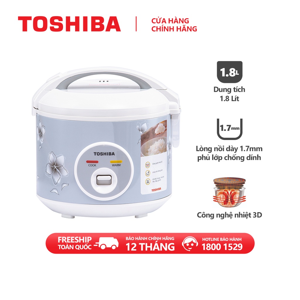 Giới thiệu Nồi cơm điện nắp gài TOSHIBA RC-18JFM(H)VN - 1.8L - Lòng nồi dày 1.7mm, chống dính - Hàng chính hãng, bảo hành 12 tháng