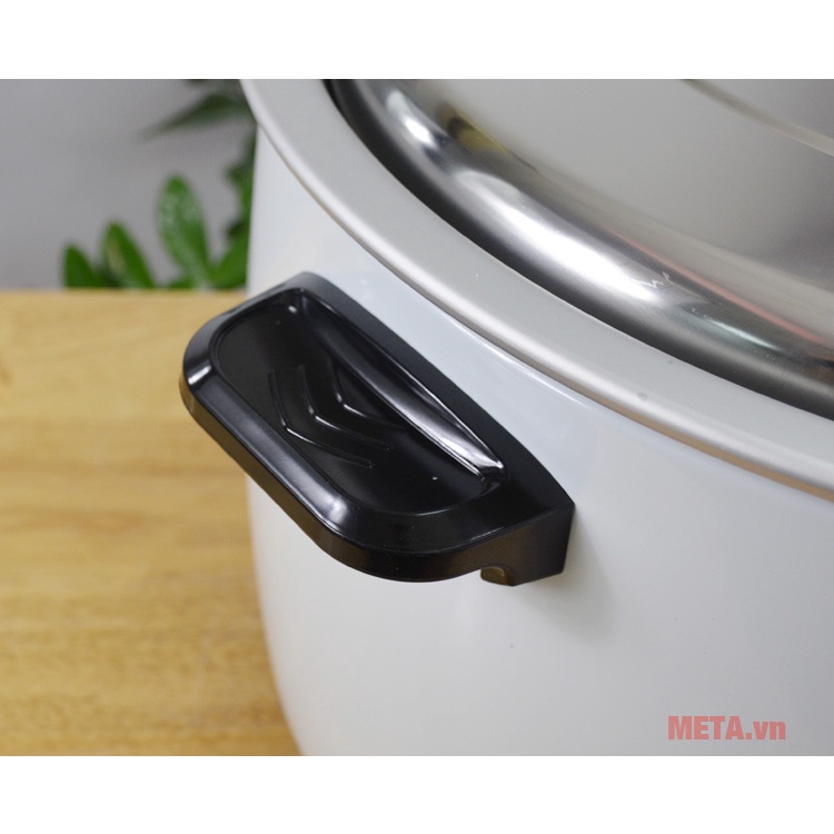 Phần nắp làm bằng thép không gỉ, dễ lau chùi. Hơn nữa, tay cầm và chân đế làm bằng vật liệu Phenolic (loại nhựa cách nhiệt cao cấp) vừa không bị nóng mà còn cách điện rất tốt, mang tính an toàn cao.