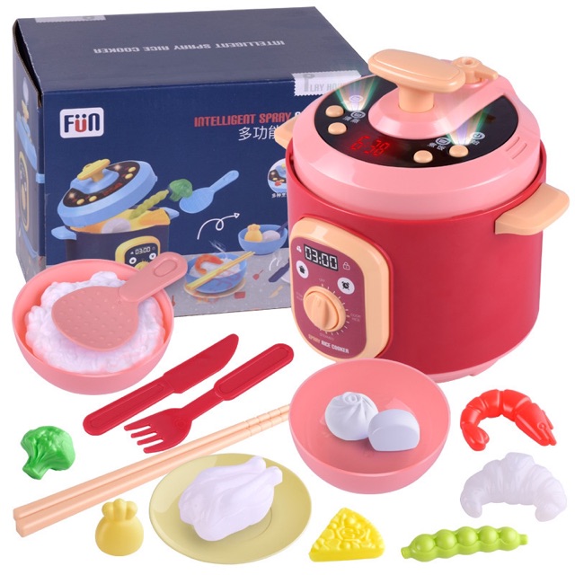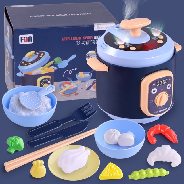 Nồi cơm có phát ra âm thanh và phun hơi nước như thật giúp bé có cảm giác đang nấu cơm thực sự