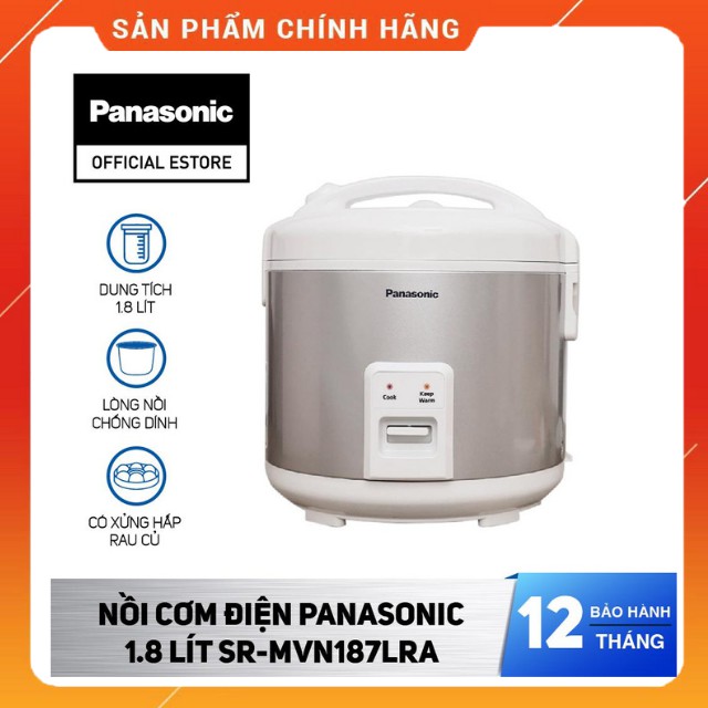 [Cơm Ngon - Chín Nhanh] Nồi Cơm Điện Panasonic MVN-187 Dung tích 1.8L Kiểu Dáng Sang Trọng - Hàng Chính HãngĐẶC ĐIỂM NỔI BẬT: