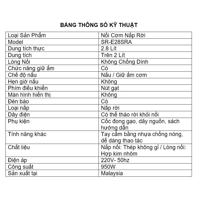 Thương hiệu: Panasonic | Xem thêm các sản phẩm Nồi cơm điện của PanasonicMô tả ngắn