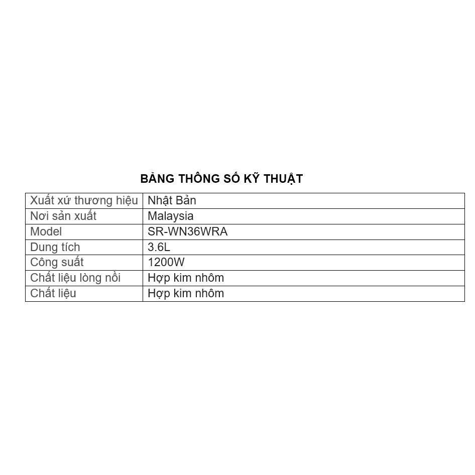 Thiết Bị Điện Gia Dụng > Đồ gia dụng nhà bếp > Nồi cơm điện || [Mã 273ELHA100K0 hoàn 7% đơn 500K] Nồi Cơm Điện Panasonic SR-WN36WRA (3.6L) - Hàng Chính HãngCòn hàng