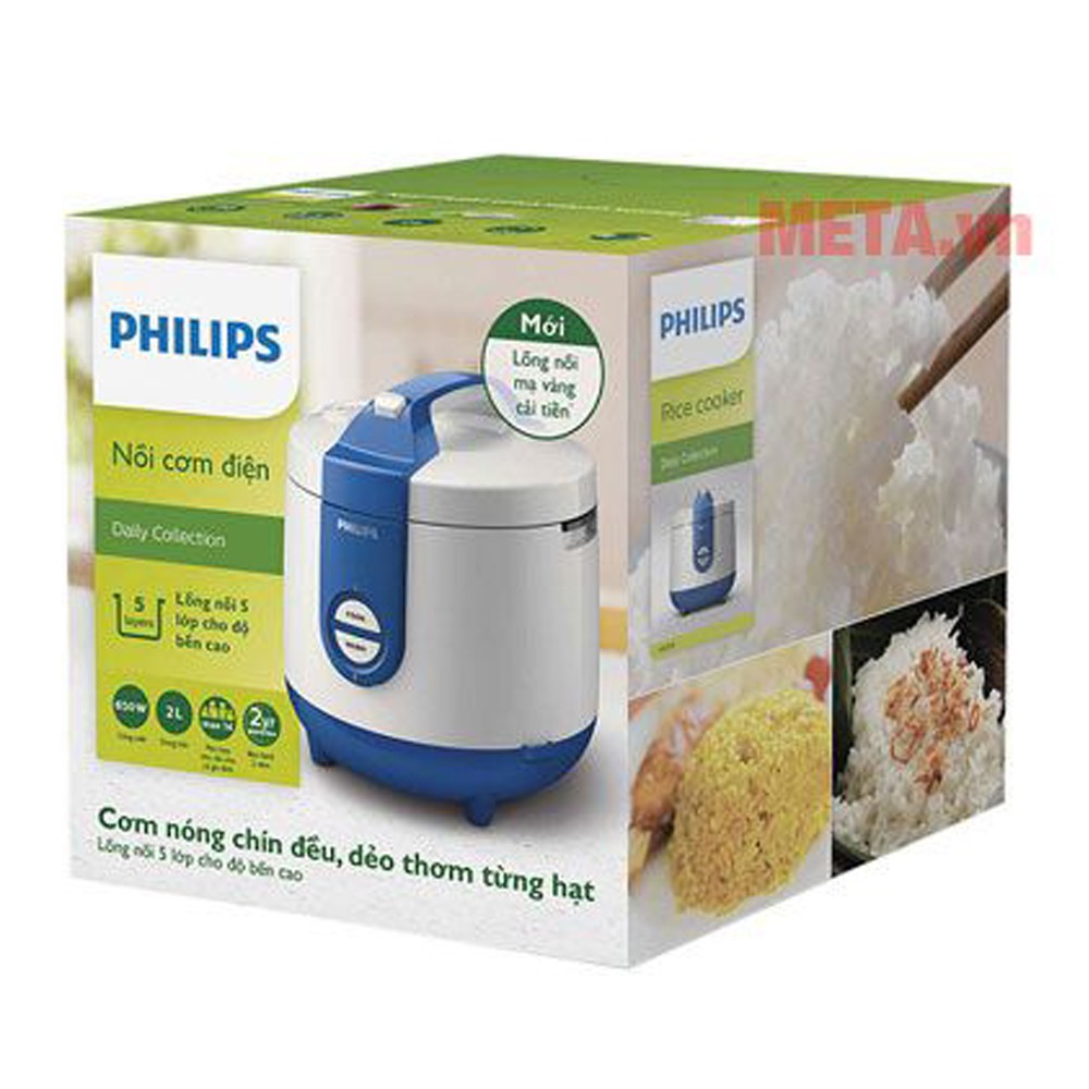 Thông số sản phẩm: Nồi cơm điện Philips HD3119/66 - 2 lítMàu sắc: Trắng xanh