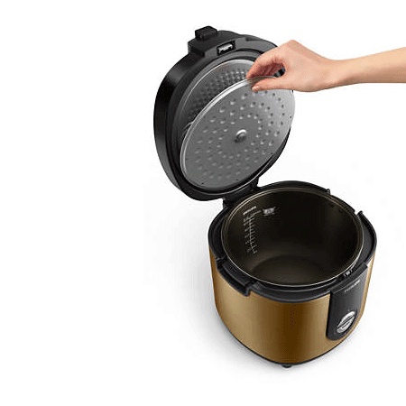 - Nắp trong có thể tháo rời hoàn toàn để dễ dàng vệ sinh. Nắp trong là một thiết kế độc đáo có thể bỏ bọt một cách hiệu quả và chống tràn khi nấu.