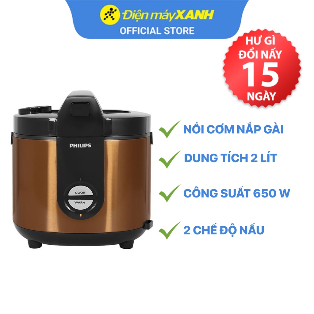 Nồi cơm điện Philips HD3132/68 Vàng 2 lít 650 W lòng nồi chống dính - Chính hãng BH 12 tháng