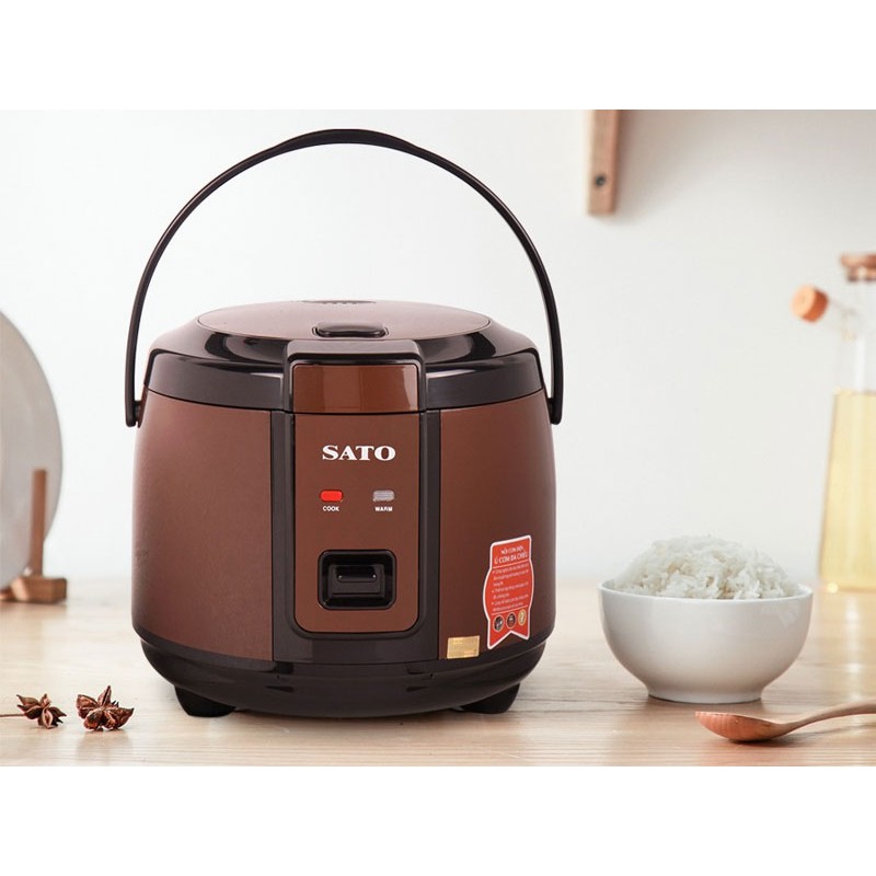 Thiết Bị Điện Gia Dụng > Đồ gia dụng nhà bếp > Nồi cơm điện || Nồi cơm điện quai xách 1.8L SATO 18F052, nòng nồi phủ chống dính cao cấp, an toàn cho sức khỏeCòn hàng