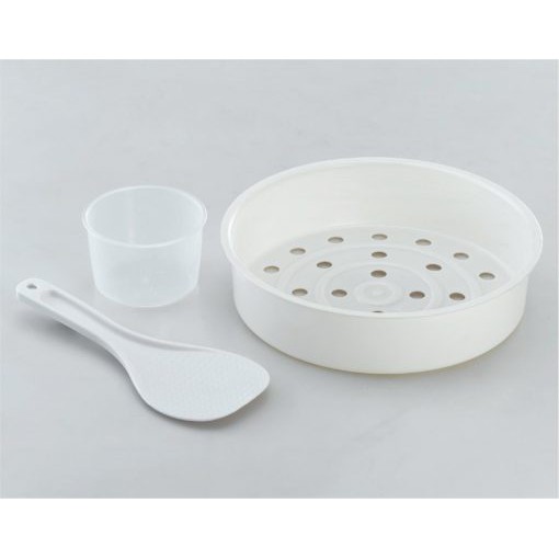 Phụ kiện kèm nồi là dây nguồn 1.0 m, cốc đong, muỗng cơm, và xửng hấp dùng để chế biến các món hấp đơn giản, góp phần làm đa dạng bữa ăn của gia đình