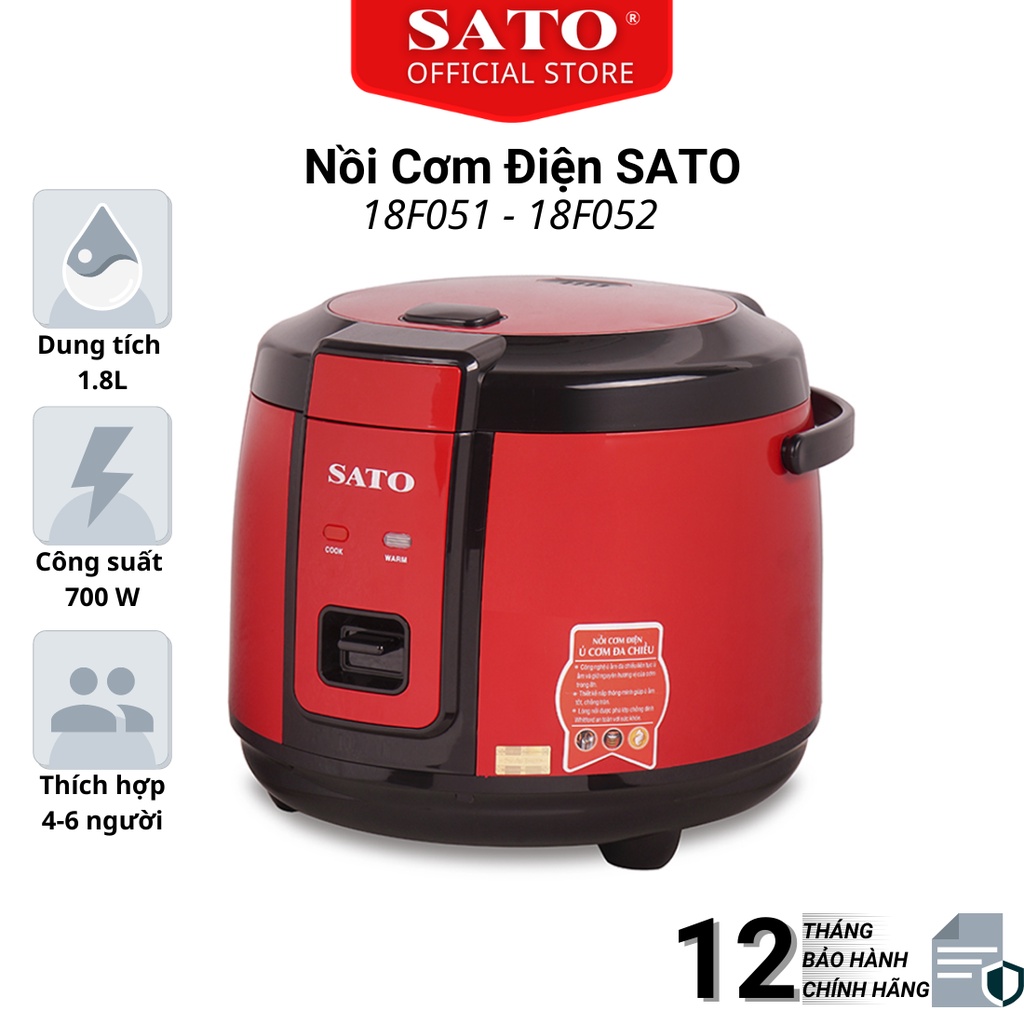 [Mã ELHADEV giảm 4% đơn 300K] Nồi cơm điện SATO 18F051 1.8L công nghệ ủ ấm đa chiều - bảo hành chính hãng 12 tháng