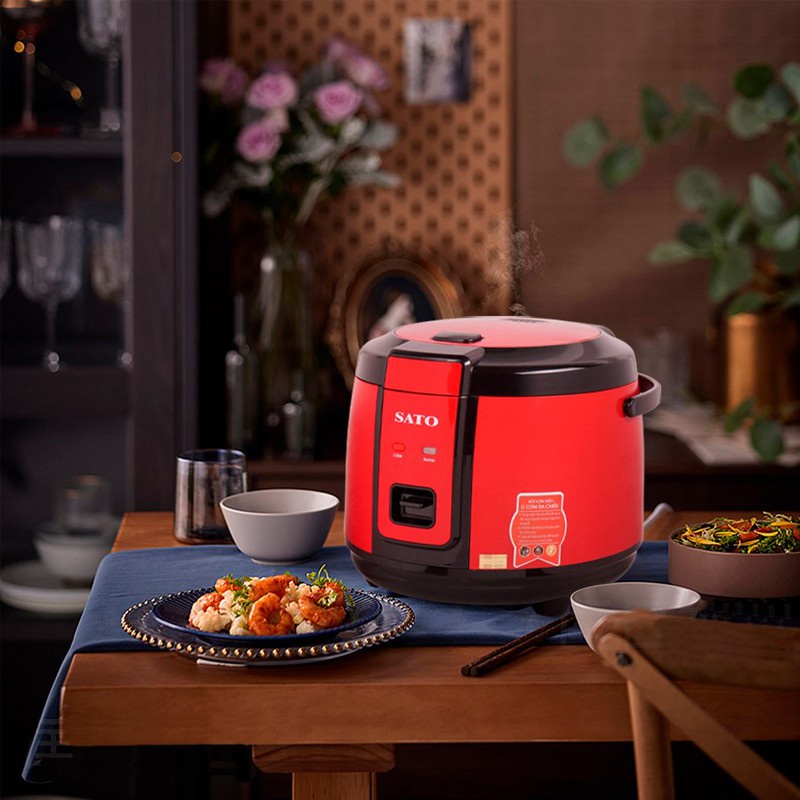 Giới thiệu Nồi cơm điện SATO 18F051 Dung tích 1.8L Nâu, Đỏ, Bảo hành 18 tháng