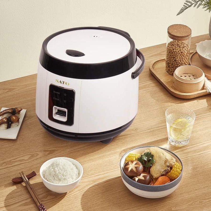- Nồi cơm điện SATO này được tích hợp nhiều chức năng tiện ích, không những sản phẩm nấu cơm chín ngon mà nó còn có thể nấu cháo, nấu súp và hấp đồ ăn.