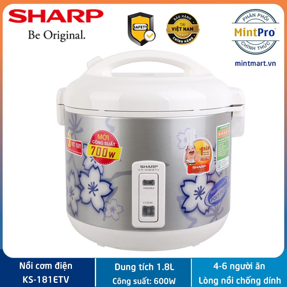 Nồi cơm điện Sharp 1.8 lít KS-181ETV - Hàng chính hãng - Bảo hành 12 tháng - Xuất xứ Thái Lan