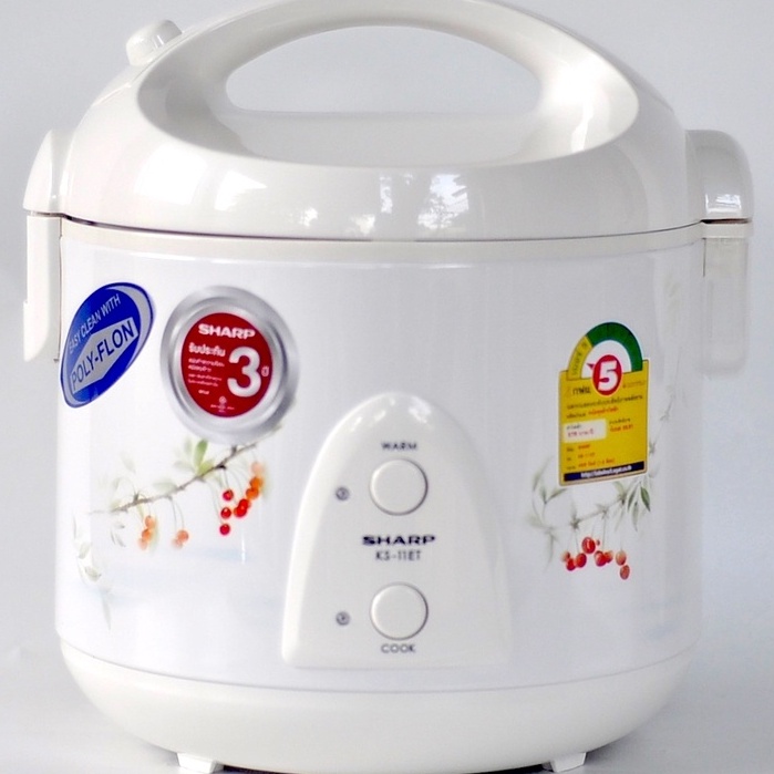Thông tin sản phẩm.. Nồi cơm điện Sharp KS-11ET 1L (Trắng).. - Nồi cơm điện nắp gài Sharp KS-11ET 485W 1L có thân nồi được làm từ chất liệu nhựa siêu bền với khả năng chịu nhiệt và chịu va đập tốt, cho thời gian sử dụng lâu dài..- Lòng nồi bằng hợp kim nhôm cứng có phủ lớp men poly - flon chống dính đảm bảo khi nấu cơm không bị dính hay cháy ở phần đáy nồi, bạn có thể dễ dàng vệ sinh, chùi rửa sau mỗi lần sử dụng. Chất liệu này không chứa chất độc hại, đảm bảo an toàn cho người dùng..- Nồi được trang bị đĩa đun lớn với công suất 485W giúp hơi nóng tỏa đều khắp nồi cho cơm chín nhanh, dẻo và thơm ngon, tiết kiệm thời gian nấu nướng..- Sản phẩm có thiết kế nắp gài chắc chắn, được trang bị thêm gioăng cao su phía trong, giúp hơi nước không bị thoát ra bên ngoài, giữ nóng cơm sau khi nấu..- Nồi cơm điện nắp gài Sharp KS-11ET 485W 1L được tích hợp chức năng cảm ứng nhiệt, sau khi cơm được nấu chín và nhiệt độ đạt mức cho phép hệ thống sẽ tự động ngắt và chuyển sang chức năng giữ ấm, giúp tiết kiệm điện năng hiệu quả.Giá $JESSE