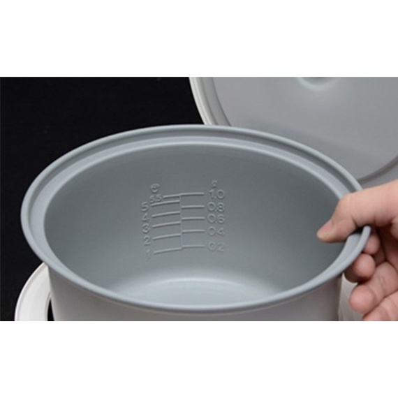 Lòng nồi cơm điện làm bằng hợp kim nhôm, sáng và bền đẹp và được phủ một lớp chống dính Poly-Flon giúp cơm chín ngon nguyên vẹn, không dính vào nồi.