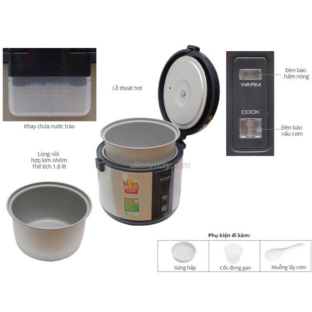 NỒI CƠM ĐIỆN SHARP NHẬP KHẨU THÁI LAN KS-R18STThông số kĩ thuật: