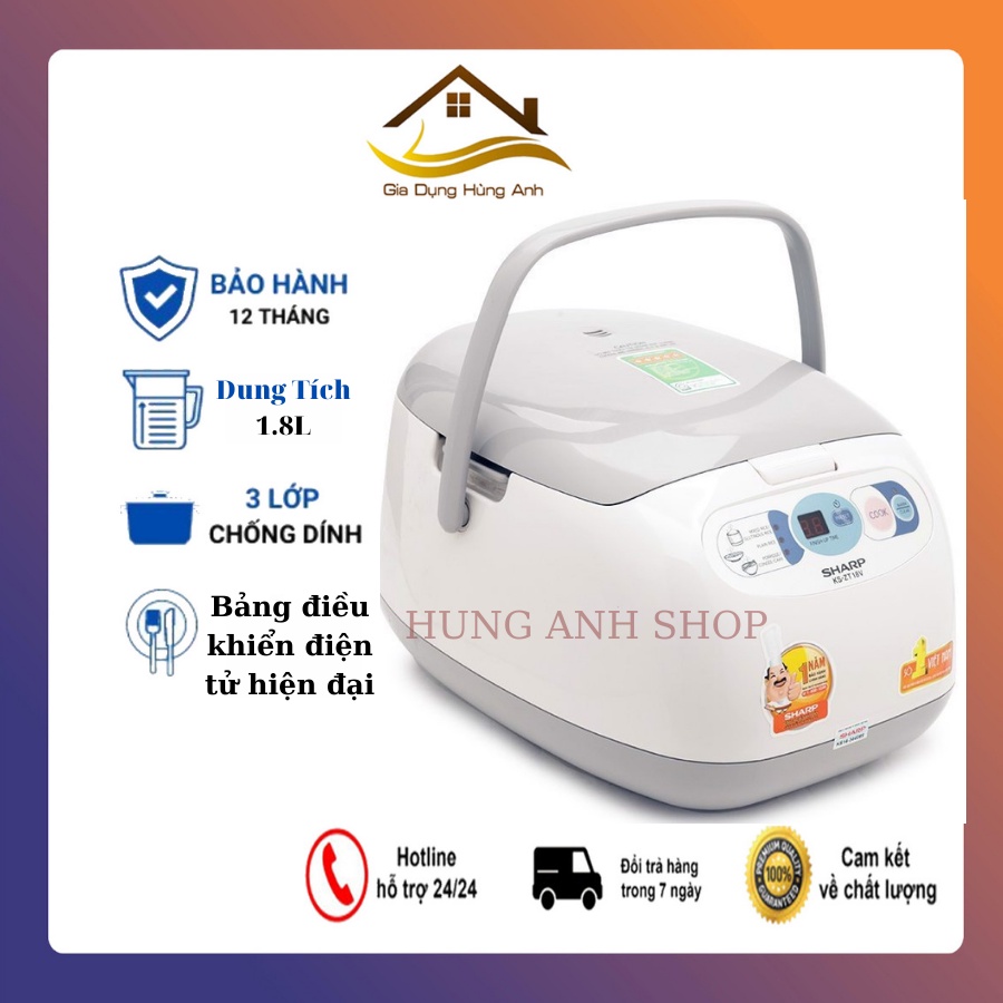 Giới thiệu Nồi Cơm Điện Sharp KS-ZT18 Thái Lan, Điểu Khiển Điện Tử Tiện Dụng, Lòng Nồi bằng Hợp Kim Nhôm Chống Dính, BH 12 Tháng