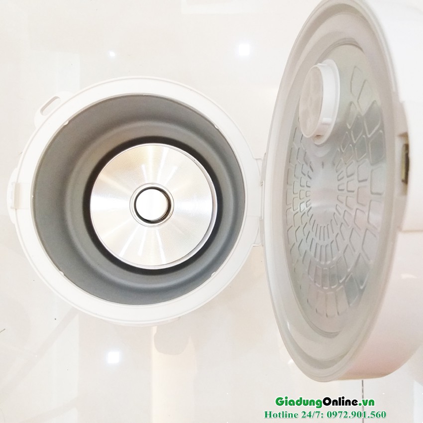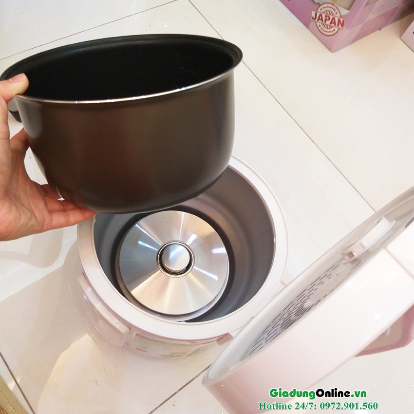 - Lòng nồi được làm bằng nhôm nguyên chất dày 1,5 ml (rất dày dặn), giúp cơm nấu ngon, đều nhiệt, tăng tuổi thọ lên gấp nhiều lần