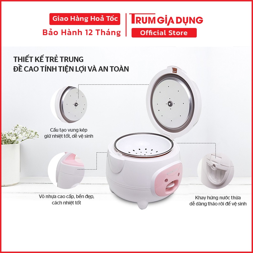 Nồi cơm điện Sunhouse 1,2L và 1,8L SHD8217 màu hồng, bảo hành 12 tháng toàn quốc bởi Trùm Gia Dụng.