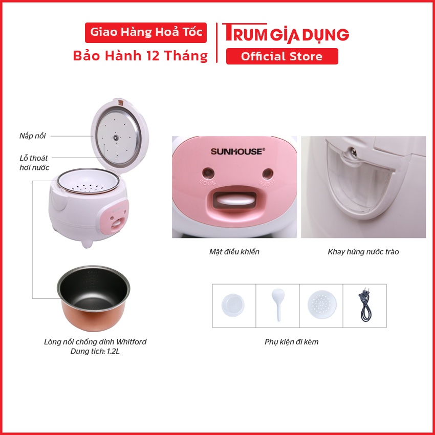 Giới thiệu Nồi cơm điện Sunhouse 1,2L và 1,8L SHD8217 màu hồng, bảo hành 12 tháng toàn quốc bởi Trùm Gia Dụng.