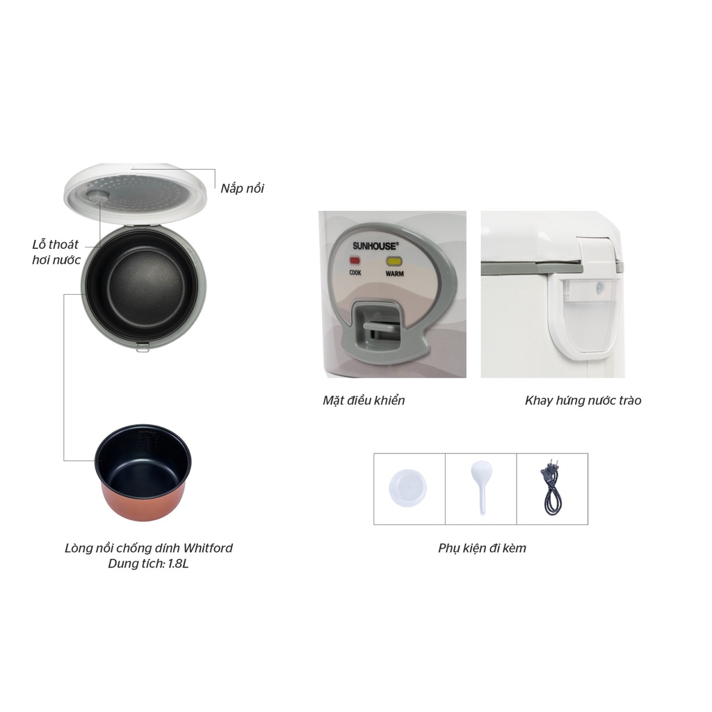 Thiết Bị Điện Gia Dụng > Đồ gia dụng nhà bếp > Nồi cơm điện || Nồi cơm điện Sunhouse 1.8 lít SHD8602 - Hàng chính hãng, bảo hành tại hãng 12 tháng toàn quốcCòn hàng