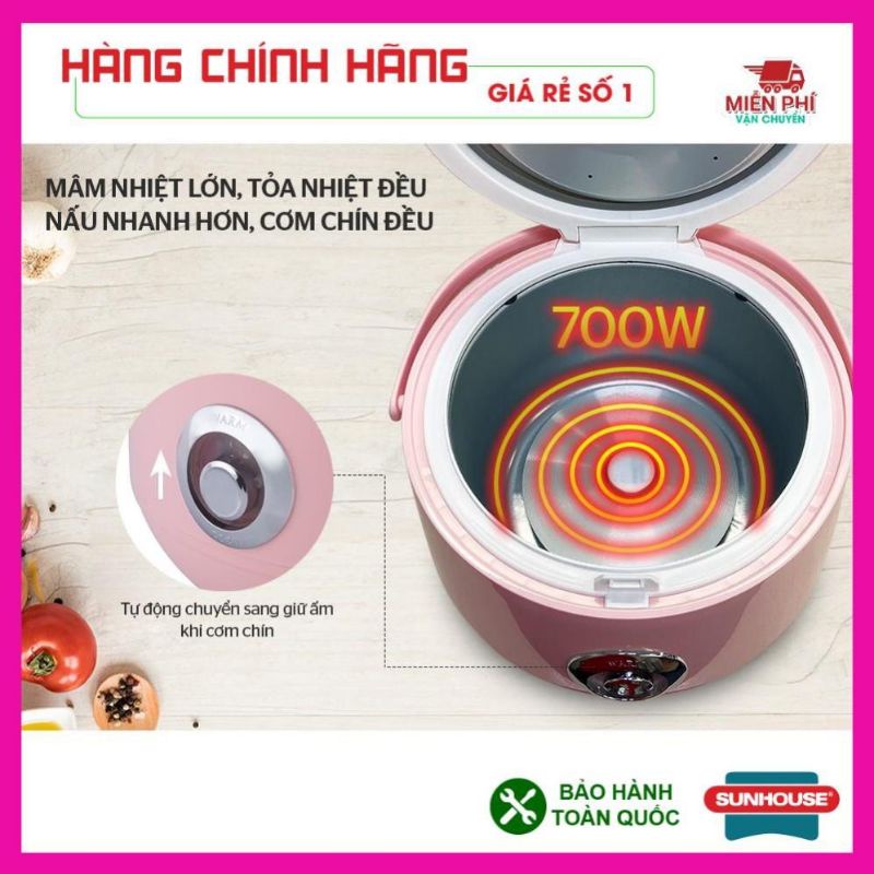Thiết Bị Điện Gia Dụng > Đồ gia dụng nhà bếp > Nồi cơm điện || [Mã 253ELSALE hoàn 7% đơn 300K] Nồi cơm điện Sunhouse Happy time dung tích 1,8 lít hàng chính hãngCòn hàng