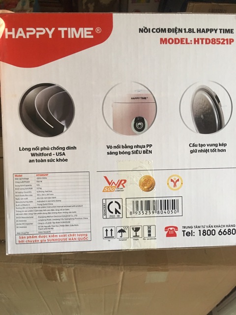 Giới thiệu Nồi cơm điện Sunhouse HappyTime 8521P 1,8L