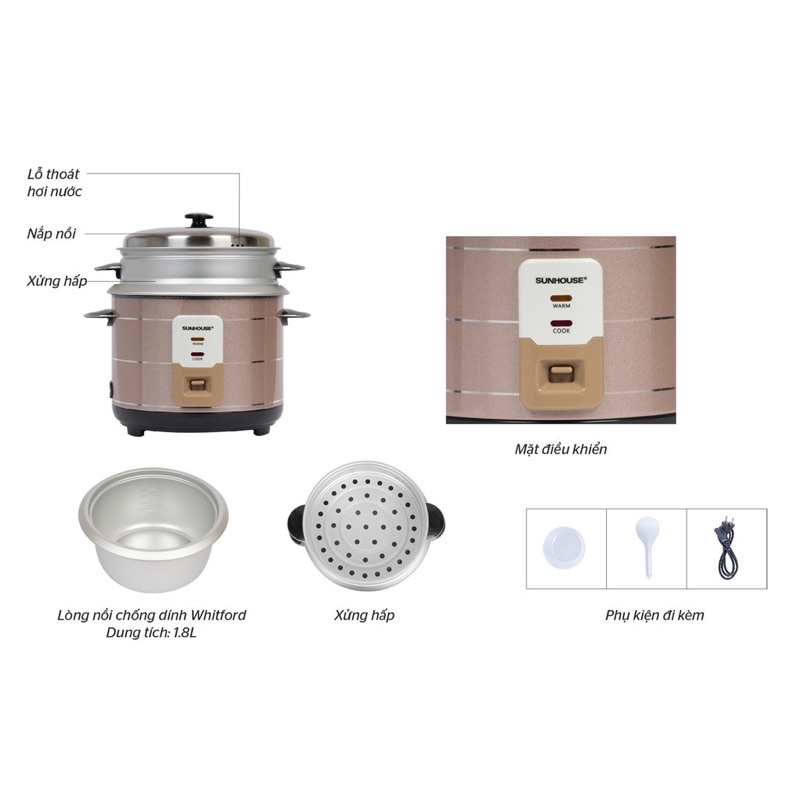 Nồi cơm điện sunhouse kèm vỉ hấp dung tích 1,8 lít ( hàng khuyến mại friso)
