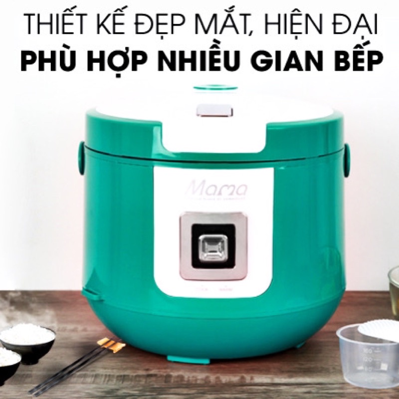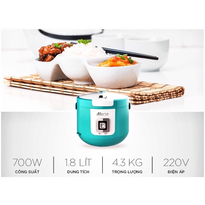 Có thiết kế trẻ trung với gam màu xanh ngọc tươi sáng, thân bằng nhựa PP cách nhiệt, siêu bền. Dung tích 1.8 lít đáp ứng nhu cầu nấu cơm trong gia đình từ 4 - 6 người.