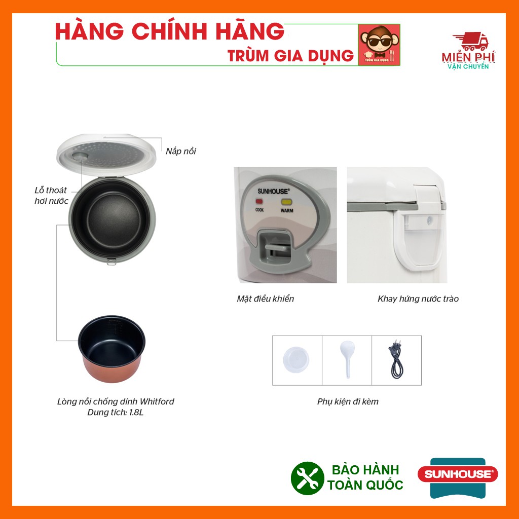 Thiết Bị Điện Gia Dụng > Đồ gia dụng nhà bếp > Nồi cơm điện || Nồi cơm điện Sunhouse SHD8062 1,8 lít, nồi cơm điện Sunhouse siêu bền, bảo hành toàn quốc 12 tháng.Còn hàng