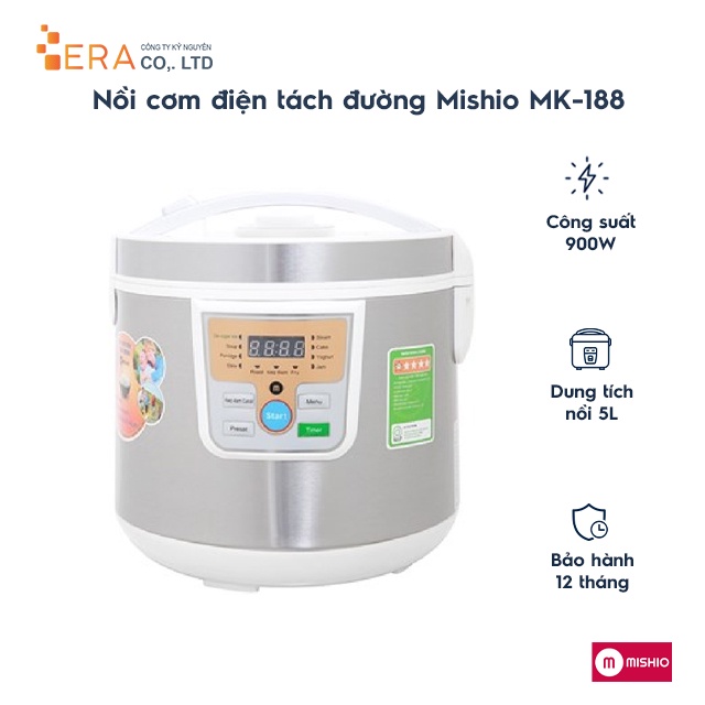 Giới thiệu [Mã ELHADEV giảm 4% đơn 300K] Nồi cơm điện tách đường Mishio MK-188