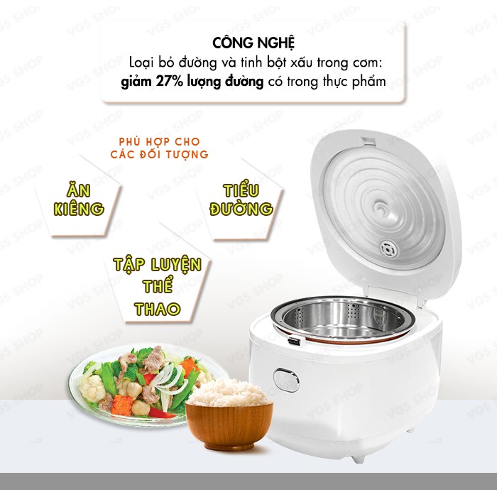 Nồi cơm tách đường giúp bạn bảo vệ sức khỏe của bản thân và gia đình, phòng tránh các bệnh nguy hiểm như béo phì, tiểu đường, tim mạch, đường huyết. Sản phẩm dành cho người tiểu đường, người có nguy cơ t